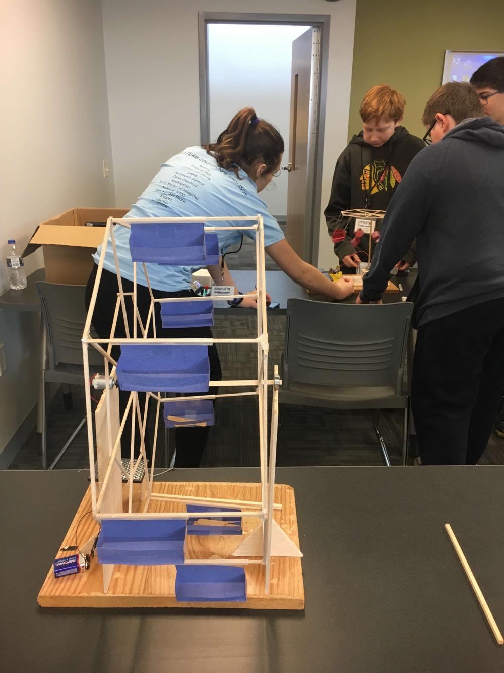 Mr. Scott Michael's Junior High students from Neponset Grade School presented at the 2nd Annual STEAM Conference at IVCC. Students presented their work with alternative energy sources. They presented their knowledge by demonstrating solar powered boats, cars, and water heaters along with wind-powered carnival rides and generators. Their presentations were well received and Neponset was invited to return in 2018 to give another presentation.