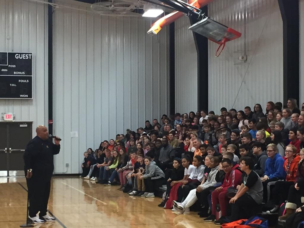 Reggie Dabbs, nationally acclaimed youth motivational speaker, presented to Kewanee students grades K through 12 on Thursday, November 29th. He also hosted a community event in the evening. Reggie's message was one of hope and inspiration. He taught students, "I can, You can, We can" through music and humor. He also emphasized to students and families the importance of loving one another. His presentation was made possible by the 21st Century Grant Program in conjunction with the Kewanee school district.