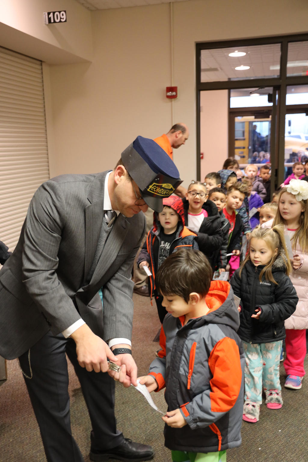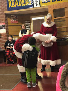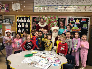 Kindergarten students visited the Polar Express. Decked out in pajamas, students road the rail from their classroom to the KHS Auditorium to view the classic movie. The holiday train theme continued as they enjoyed lunch in “Cafe Car” and visited each classroom to create different Polar Express related crafts, enjoy a cup of cocoa, and conduct their own bell ringing symphony! A special visitor from the North stopped by the check in on the students. Mr. and Mrs. Claus helped spread the Christmas spirit throughout each of the classrooms.