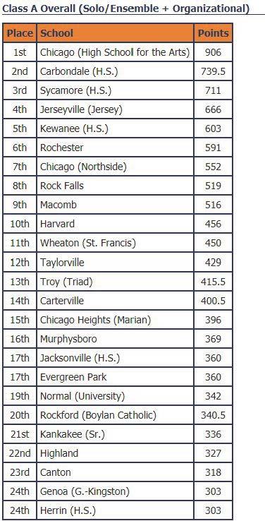 This weekend's success, combined with last month's Solo & Ensemble contest, finishes Kewanee H.S. in fifth place in the IHSA State Music Sweepstakes for class A. This is the highest Kewanee has placed in school history! Congratulations to our Kewanee High School student musicians!