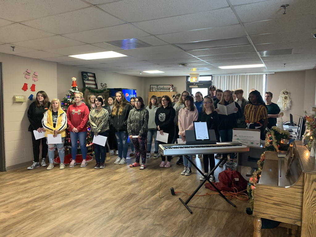 The Kewanee High School Concert Choir spent the past week bringing holiday cheer to five destinations around Kewanee. We visited Courtyard Estates, Royal Oaks, Washington Apartments, Kewanee Care, and Hollis House.