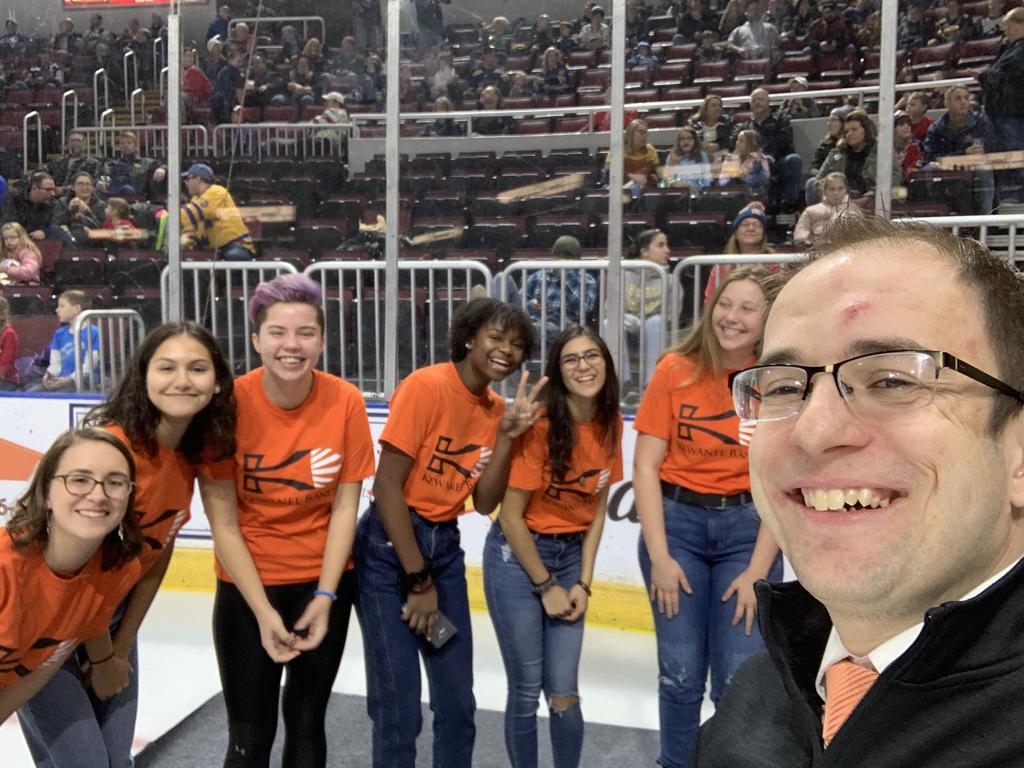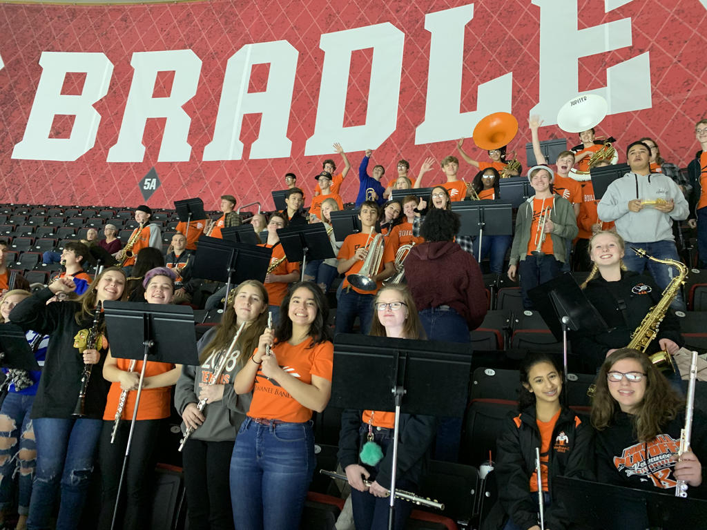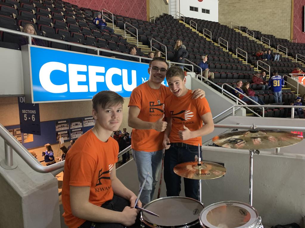 “The Kewanee High School Pep Band and National Anthem Choir were invited to perform at the December 21st professional hockey match between the Peoria Rivermen and the Quad City Storm. During the event, the Stanley Cup was on display and drew a crowd of over 5,000 to the Peoria Civic Center.”