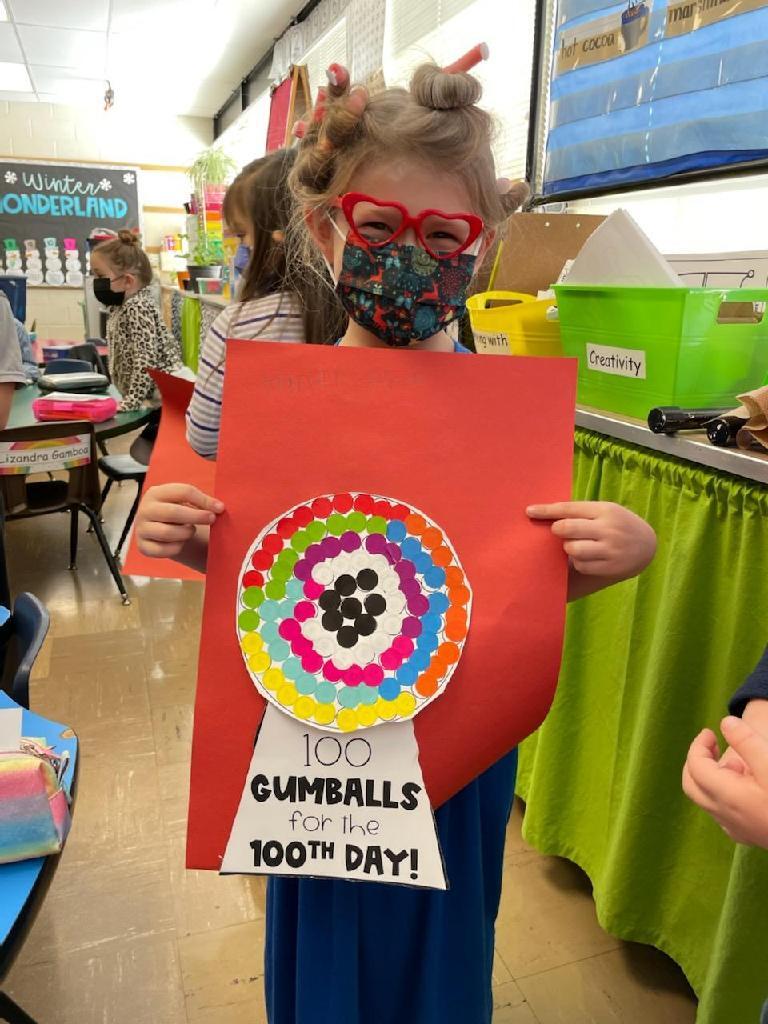 Students at Belle Alexander Celebrated the 100th Day of 2021-2022 School Year by dressing up and with classroom projects.