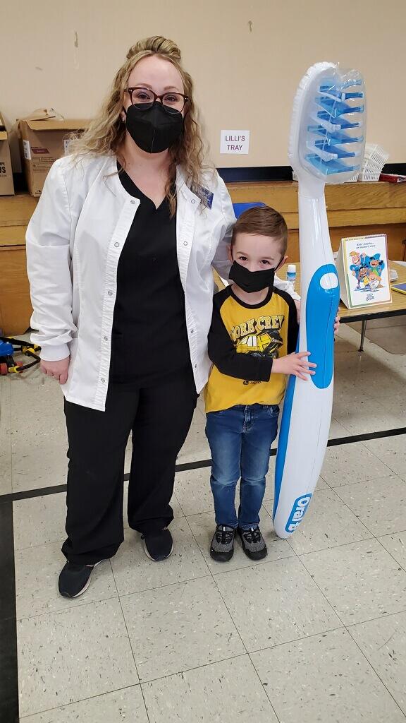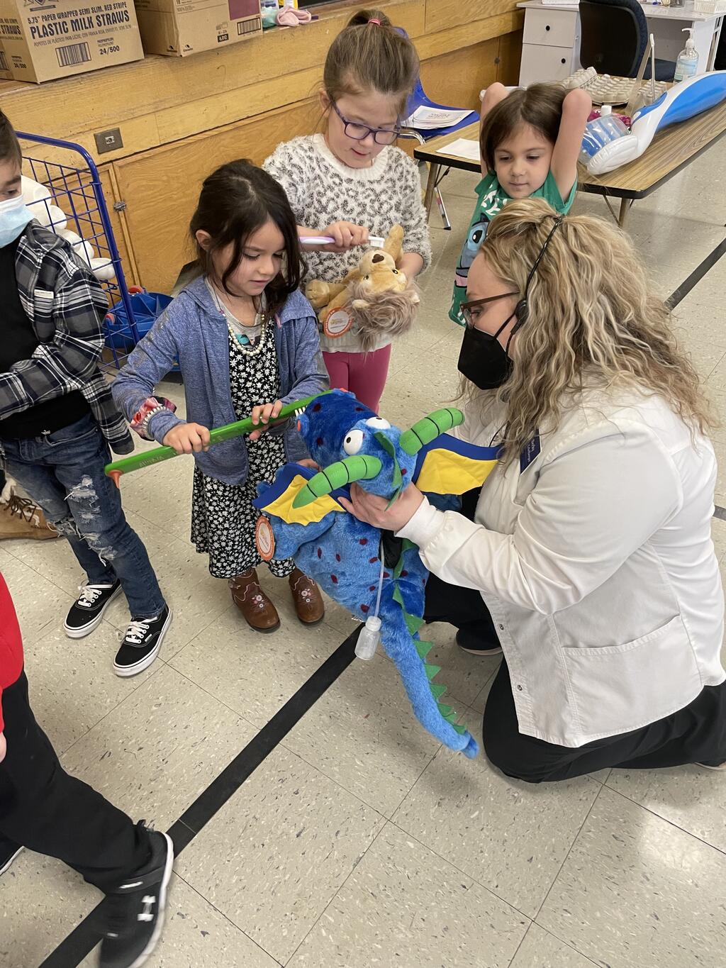 To celebrate Children's Dental Health Month, Belle students had the chance to learn all about dental hygiene with the help of Becky Echelberger, Dental Hygienist at Knox Family Dental and Adjunct Clinical Professor at Carl Sandburg College, and Carl Sandburg Dental Hygiene program students (and local Kewanee & Wethersfield High School alumni), Kasey Jones and Eden Juarez. They taught the students the importance of brushing, flossing, and taking care of their teeth, gums, and tongue. They also reviewed foods that can help keep teeth healthy and strong!