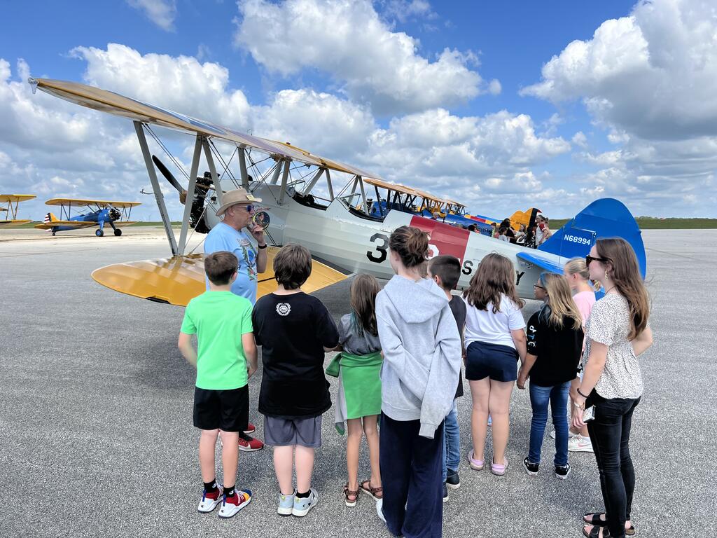 Central Elementary 4th grade students visited the 51st annual Stearman Fly-In at the Kewanee Municipal Airport on September 7. Pictured here are Mrs. Costenson and Ms. Hogeboom’s students getting an up-close view and a history lesson about Stearman bi-planes.